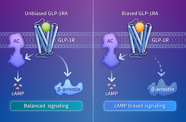 BiasVantage? 偏向型激動劑發(fā)現(xiàn)平臺利用基于結(jié)構的合理設計及全面的信號傳導分析,打造療效增強、脫敏程度降低的精準療法。該平臺開發(fā)信號選擇性配體,通過降低脫敏程度延長受體活性,從而比非偏向型方法獲得更佳的治療效果。